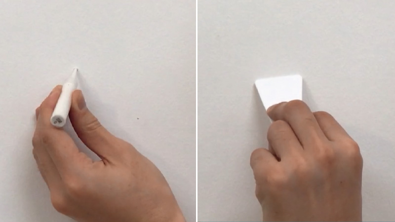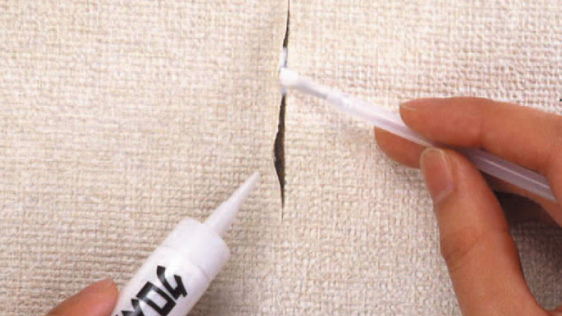 ② はがれやめくれの大きさに応じて、ヘラなどで接着剤を塗り、空気を押し出しながら、壁紙を貼り付けていきます。