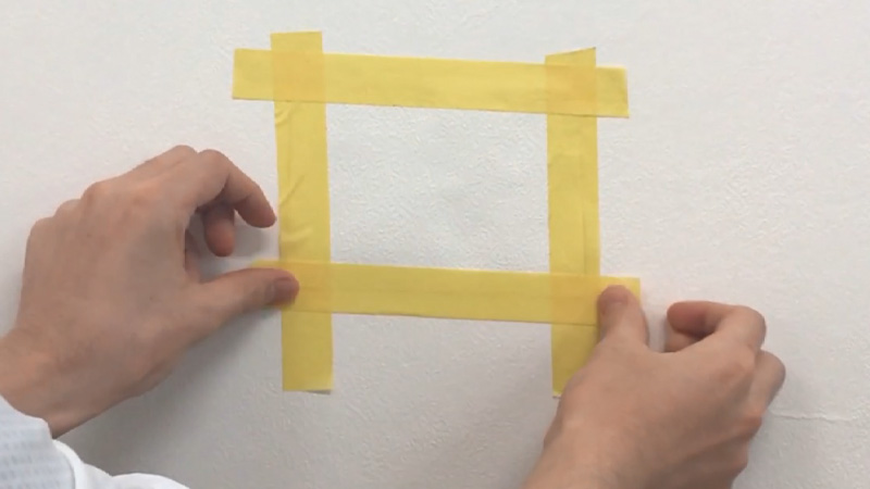 新しい壁紙を破れた部分より少し大きめに切り、補修箇所の上にマスキングテープで仮止めします。