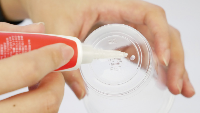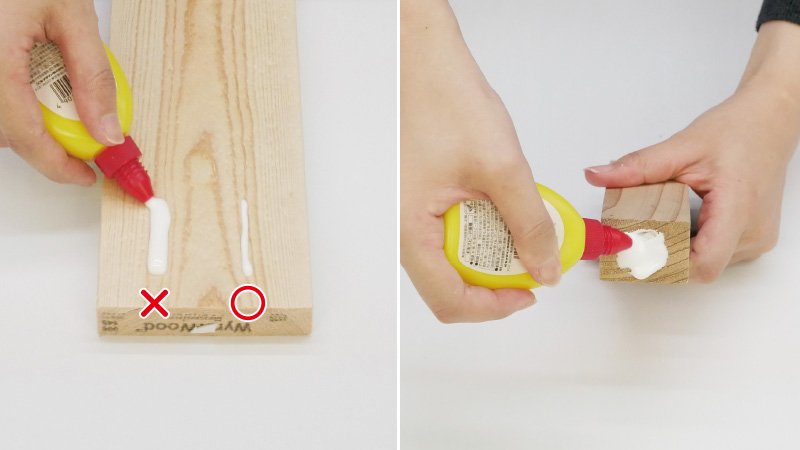 瞬間接着剤と合成ゴム系接着剤は、貼り合わせた後で強く押さえます。接着したものは24時間以上経ってから使用してください。