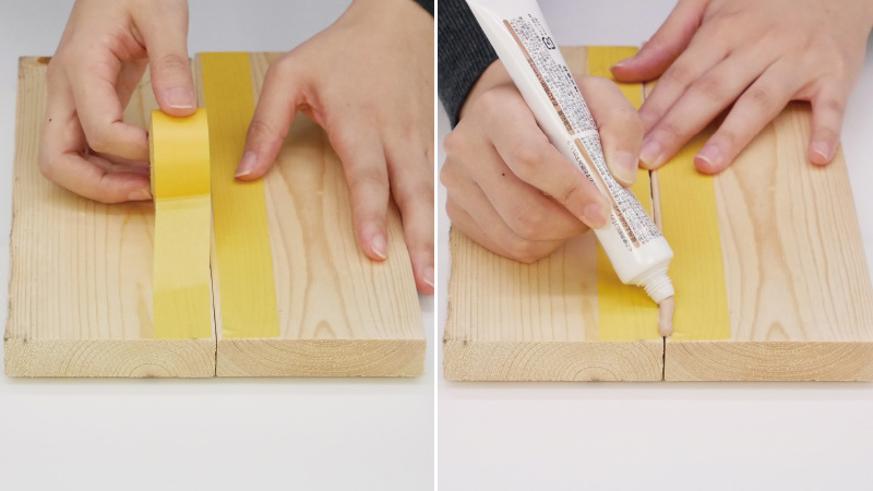 補修部分のまわりに貼って、充てん剤のはみ出し汚れを防止するテープです。
