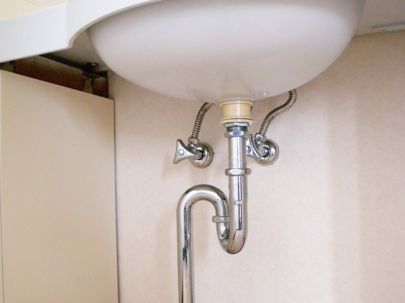 水の勢いが強過ぎる、あるいは逆に弱過ぎるという時には、排水管の止水栓で水量をコントロールします。洗面所の場合、止水栓は洗面台の下にあり、普通はハンドルを右に回すと水量が少なく、左に回すと多くなります。湯と水が出る混合栓の場合は給水管が2本あり、ほとんどは右側が水用、左側がお湯用です。