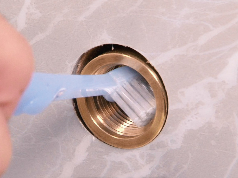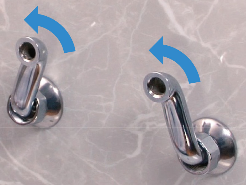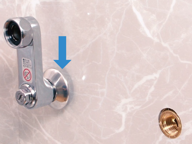 片手で簡単に操作できるシングルレバーは使い勝手抜群。 部品購入の前には、2本の偏心管の取り付け幅を確認しておきます。