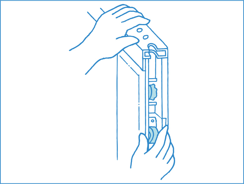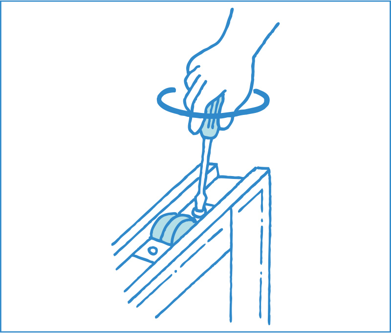 [3]動かすと擦れるような音がする時は、戸車が沈み過ぎなので高さの調節が必要。戸車が摩耗していたら、新しいものと取り替えます。