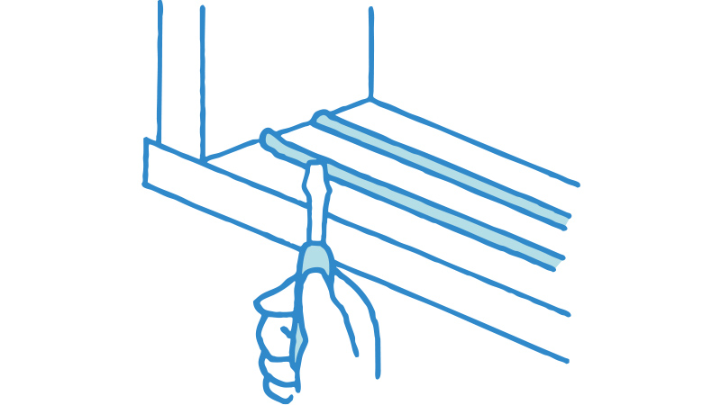 [1]マイナスドライバーなどを使って、古いレールを外します。釘がさびて抜けにくい時は、ペンチなどで抜きます。