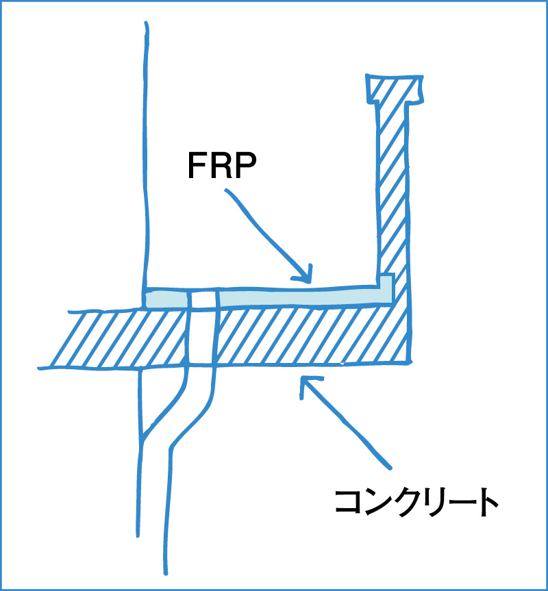① 最初に補修箇所のごみ・さび・油・水あかなどの汚れを落として、よく乾燥させておきます。 ※補修箇所のまわりを汚さないために、あらかじめマスキングテープなどを貼っておきましょう。 ※補修箇所の大きさに合わせて、ガラスマットを2枚カットしておきます。 ※ガラス繊維は手に刺さりやすいので、ゴム手袋などで手を保護てください。