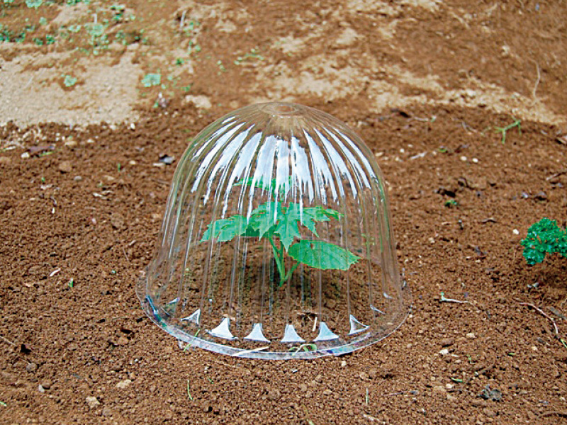 春先、苗を植えたらかぶせます。主に地を這う野菜に使用します。<必要な野菜苗>なす・すいか・メロン・きゅうり・ピーマン・カボチャなど<効果>・春先、地面の温度を上げる。・遅霜から守る。・防風・防寒の効果がある。・タネバエの幼虫による被害から守る。