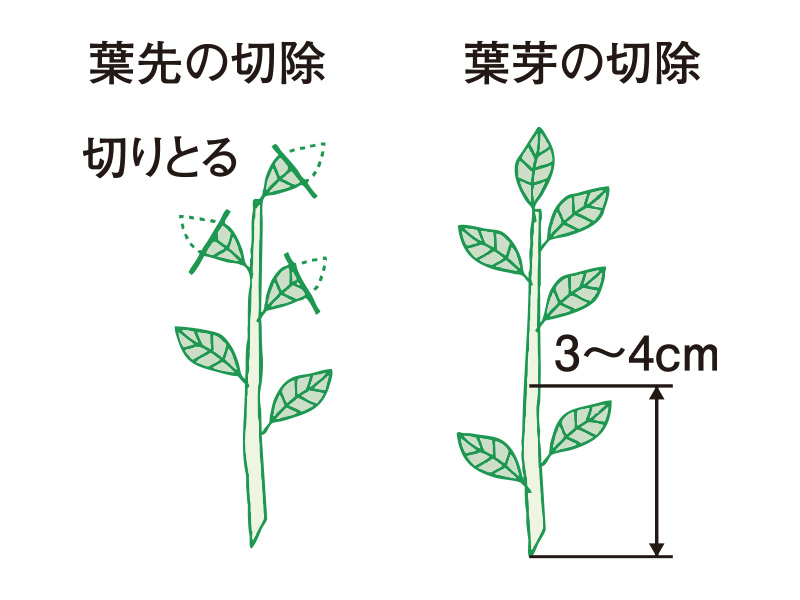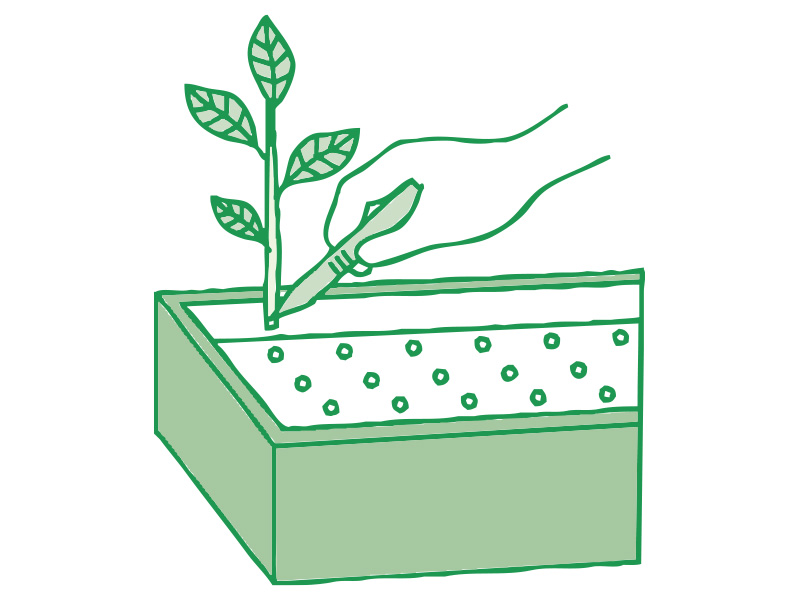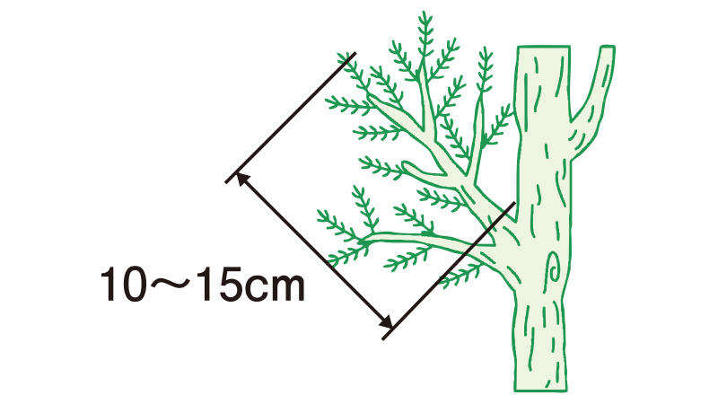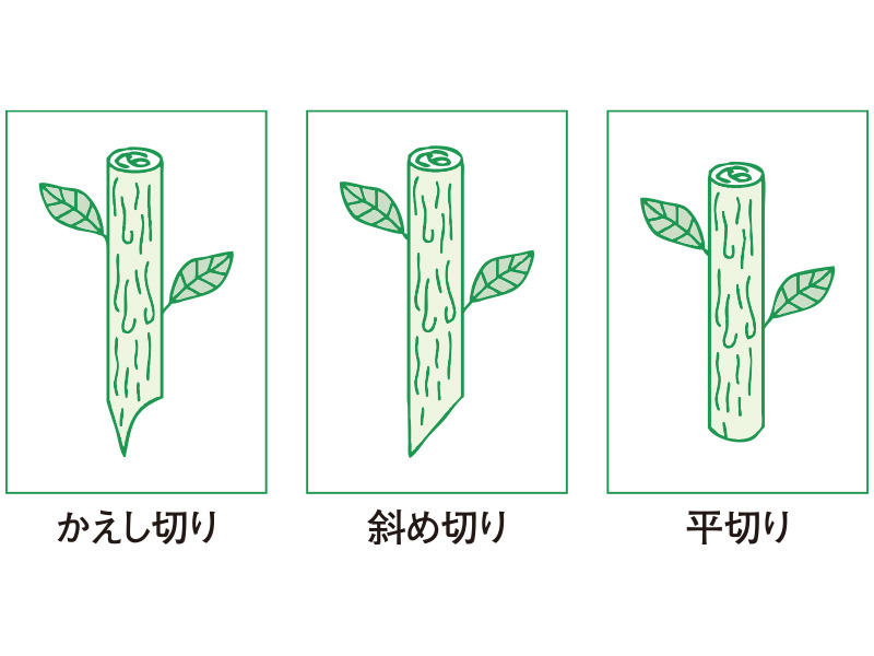 4月ごろの春ざし、6月下旬~7月上旬の梅雨ざし、9月ごろの秋ざしができますが、できれば春か梅雨時期に行いたいものです。秋になると発根率が低くなります。●落葉樹