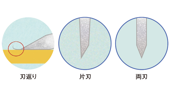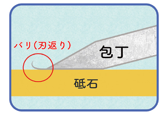 表面を研ぎ、刃返りが出たら裏側を砥石にピタリとあてて研ぎ、刃返りをとります。