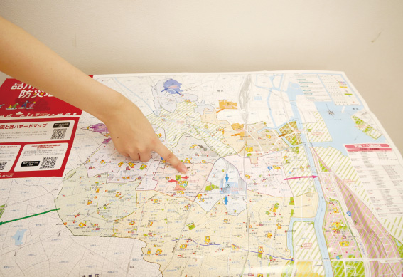 防災頭巾は防炎加工が施されているものを。子供用には住所・名前・連絡先などを書いた名札を縫い付けておくと安心。