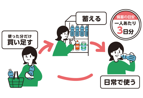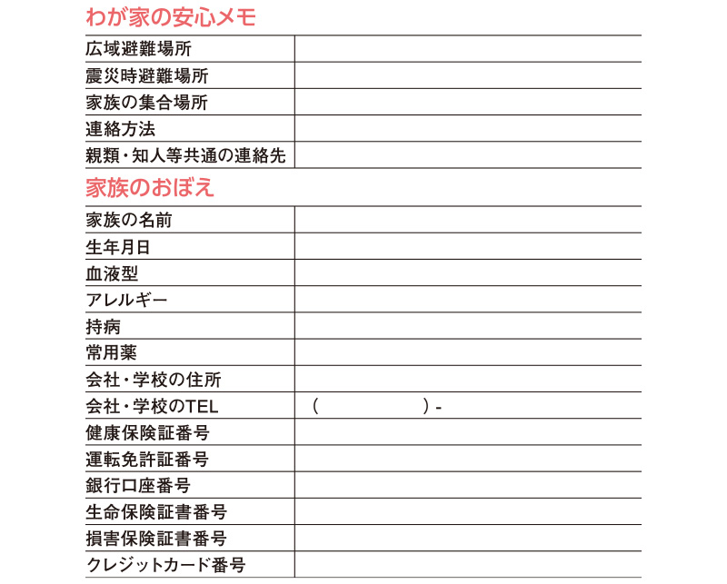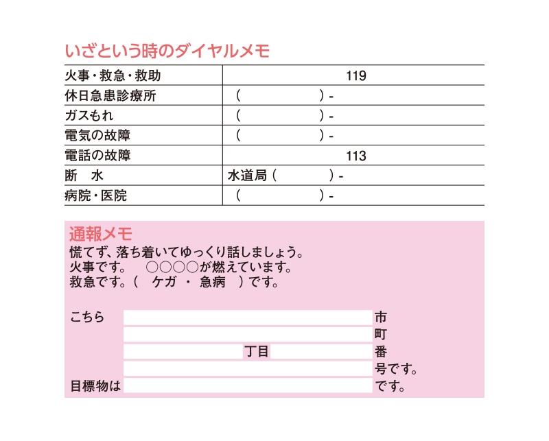 災害が起こった場合、どのように対応するかを日ごろから家族でよく話し合い、それぞれの家庭に必要な持ち出し袋を用意するようにしましょう。
