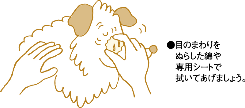 シャンプーや日常のお手入れの時は、目の周囲をぬるま湯を含ませた綿で拭くくらいで十分です。目やにや涙やけがひどいようなら獣医さんに相談しましょう。