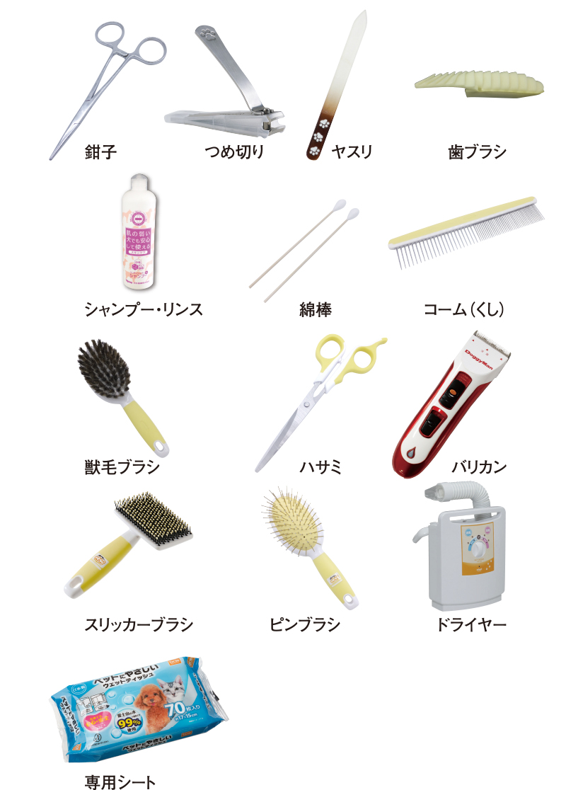 グルーミングの用具は、犬種によって違います。説明書を読んでお選びください。