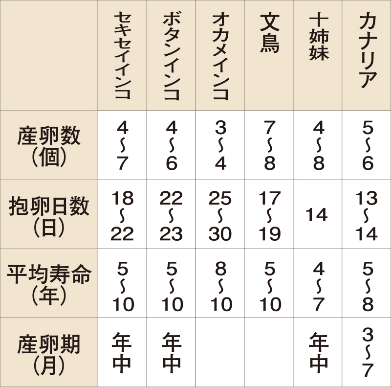- ※産卵期やひなを育てる時期、また冬の寒い時期や体力を付けたい時にはあわだま・カナリアシードを与えましょう。