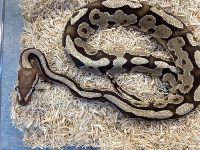 コメント | ★お迎えしやすい価格になりました★ボールパイソン のファイアスペクターの女の子です。繁殖でモルフを考えると使いやすいらしい…☆ノーマルとは違ったパターンの子が気になる方!色も綺麗なメリハリボディのボールをお探しの方いかがでしょうか? |