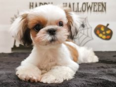 コメント | 他店舗から移動してきました☆小柄でお顔の小さいシーズーくん♪体重1.75kg(10/9現在)ハロウィンフェア開催中‼インスタグラムもやってます♪投稿、ストーリーでお店の可愛い子たちをご紹介していますのでぜひご覧ください。『ペットコート鳴海』で検索して下さい。※安心パック代・2本目以降の接種済み別途かかります。お気軽にお電話でお問い合わせください。 |