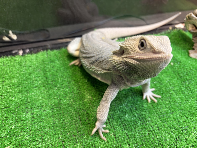 | コメント | 人がいると近づいてきてくれる可愛いフトアゴです。食欲旺盛です。現在コオロギ、野菜を交互に食べさせてます。 |