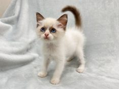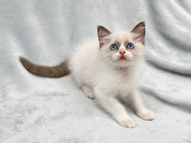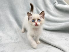 コメント 白い体にブルーのお目目が輝くラグドールの女の子のご紹介です♪9/30 現在体重:0.8kg父親体重:4.5kg母親体重:3.8kgとっても懐っこくて可愛らしい子です(*'ω'*)目は綺麗なブルーで、美しさが際立ってます!こんなに可愛らしい目目で、見つめられながら甘えなきされると、誰でもメロメロ間違いなしです♡ラグドールはぬいぐるみのようにおとなしく抱っこさせてくれる子が多いのです(^▽^)/お膝の上でずっとなでなでしてたい方にはもってこいの種類♪猫ちゃんの中でも大きくなるのでお家の中での存在感も抜群です☆毛はコミュニケーションもかねてこまめにブラッシングして毛玉を防いであげてくださいね!※生体費用のほか、ワクチン接種代を1回あたり税込み8800円、マイクロチップ代5500円を頂戴しております。※血統書が別途必要なお客様には税込み5500円を頂戴しております。※当店では生命保証代は無料でついております。※上記以外の費用はかかりません。