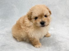 コメント | 綿毛のようなポメラニアン×トイプードルの男の子のご紹介です♪10/3 現在体重:0.6kg父親体重:2kg母親体重:2.2kgころころふわふわのポメプー君がやってきました♡小顔でつぶらな瞳、ぽてぽてのお腹が母性をくすぐる可愛さです(*'ω'*)ポメラニアンもプードルも飼い主さんにべったりの子が多いので、この子もきっと甘えん坊さんになると思いますよ♪小さめサイズで激カワなポメプー君、ぜひお早めに会いに来てください♡※生体費用のほか、ワクチン接種代を1回あたり税込み8800円、マイクロチップ代5500円を頂戴しております。※血統書が別途必要なお客様には税込み5500円を頂戴しております。※当店では生命保証代は無料でついております。※上記以外の費用はかかりません。 |