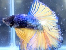 | コメント | 1点セレクトベタです。大きな半月状の尾びれと青と黄色のツートンカラーがとても綺麗なベタです。 |
