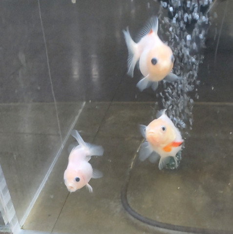 コメント ボディが白色でほっぺがピンク色のとても可愛い金魚です。