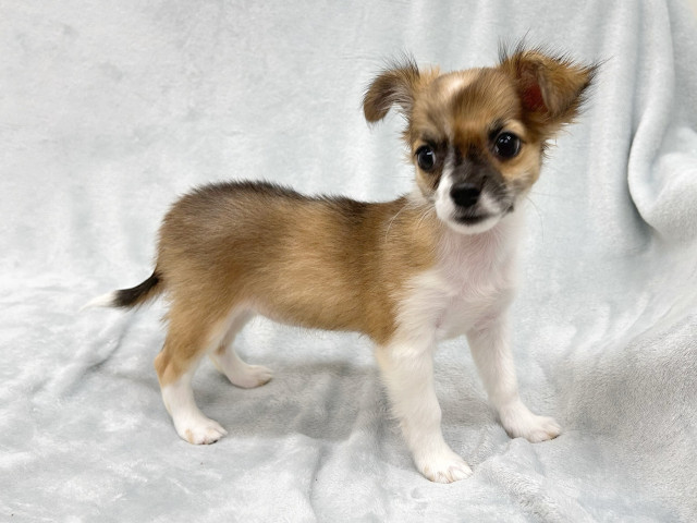 | コメント | 個性的なカラーが可愛いロングコートチワワの女の子のご紹介です♪父親体重:3kg母親体重:3kg好きな方にはビビっときそうな特徴的なカラーをしたチワワちゃん(*'ω'*)性格はとっても活発で、楽しそうに走り回る姿を見てるだけで元気をもらえます☆チワワはポピュラーな犬種の中で最も小さく、お手入れも比較的簡単なことから常に人気の種類です♪そして毛色のバリエーションが大変豊富で同じような子には出会えませんので、気になったらすぐにご来店くださいね♪※生体費用のほか、ワクチン接種代を1回あたり税込み8800円、マイクロチップ代5500円を頂戴しております。※血統書が別途必要なお客様には税込み5500円を頂戴しております。※当店では生命保証代は無料でついております。※上記以外の費用はかかりません。 |