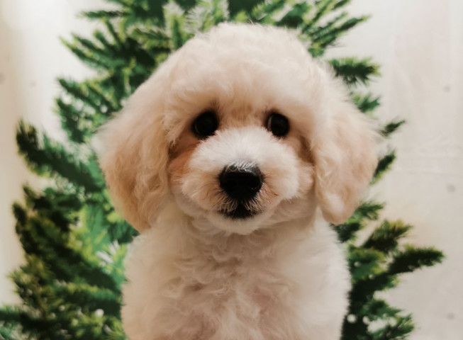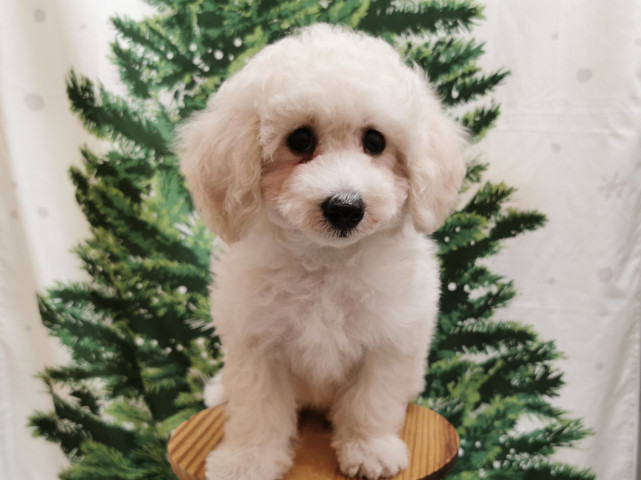 | コメント | ビションフリーゼとトイプードルのミックスです。サイズ大きめ!物怖じしないとっても元気な子です☆体重2.25㎏(11/13現在)インスタグラムもやってます♪投稿、ストーリーでお店の可愛い子たちをご紹介していますのでぜひご覧ください。『ペットコート鳴海』で検索して下さい。※安心パック代・2本目以降の接種済み別途かかります。お気軽にお電話でお問い合わせください。 |
