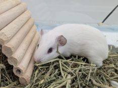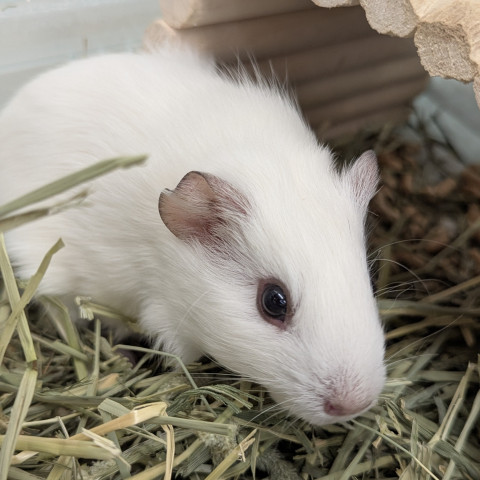 | コメント | 臆病な性格が多いですが、人に慣れやすく感情表現も豊かです。真っ直ぐな短毛が特徴のショート(イングリッシュ)モルモットの全身綺麗な白色です。 |