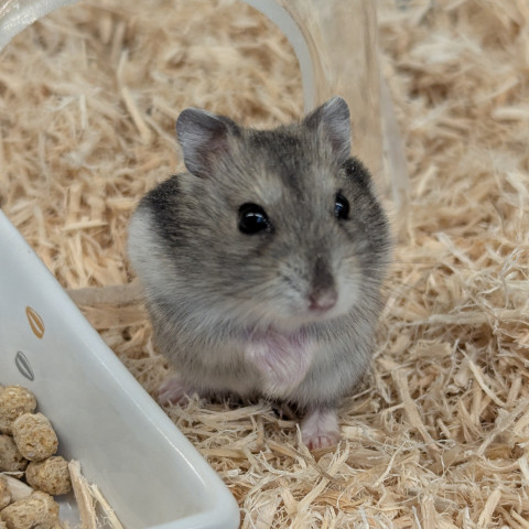 | コメント | グレーの体色の背中に黒いラインが入るのが特徴のジャンガリアンハムスターです!なつきやすくとても人気なハムスターです。 |