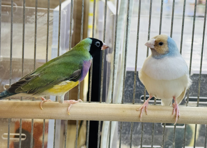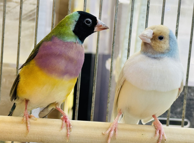 | コメント | 色鮮やかで華やかなコキンチョウをペアで販売しています!頭が水色で胸が輝くホワイトな子がオス、頭が黒くて体が紫と黄色という奇抜なカラーの子がメスです☆この一目見ただけで目を奪われるカラフルさがコキンチョウの魅力です✨️ |