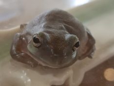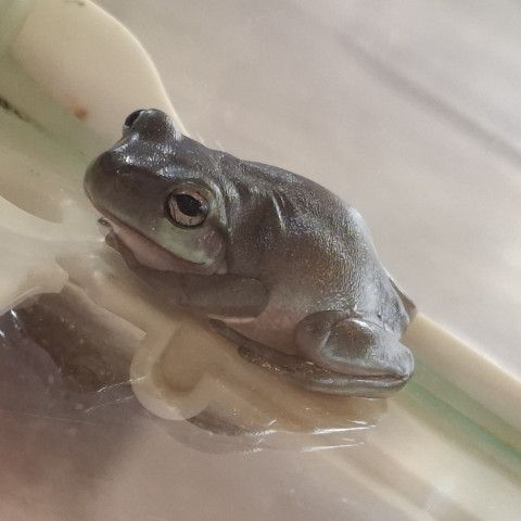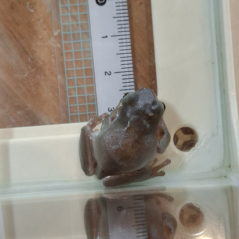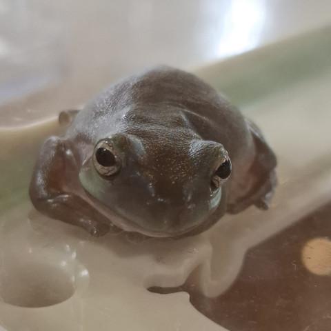 コメント 少し育ったイエアメガエルもう1匹よりも濃いめです。イエコSサイズ食べてます(*´∇`)