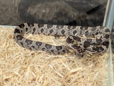 | コメント | コーンスネークが本来持つ赤い色素が欠乏し、濃いグレーの模様が特徴です。25年9月生まれです。 |