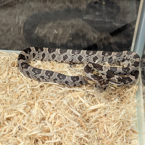 | コメント | コーンスネークが本来持つ赤い色素が欠乏し、濃いグレーの模様が特徴です。25年9月生まれです。 |