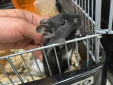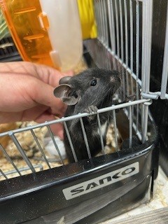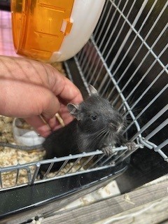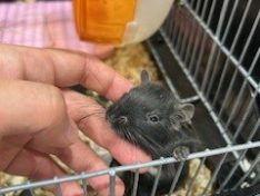 | コメント | 人懐っこい性格のブラックカラーのデグーマウスです。手のひらにも乗ってくる懐き具合です。 |