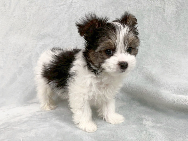| コメント | 当店初!?マルチーズ×パピヨンの男の子のご紹介です♪ 1/21 現在体重:1.1kg 父親体重:マルチーズ 2.8kg母親体重:パピヨン 2kgパピヨン柄とマルチーズの短いマズルを受け継いだいいとこどりのパピマル君♡抱っこが大好きで、お膝の上でずっといい子にしてくれます(*'ω'*)パピヨンもマルチーズもシングルコートで比較的抜け毛が少ない犬種なので、”わんちゃんを飼いたいけど抜け毛が心配…”という方にもおすすめのミックス犬です☆かといっても少しずつ毛は抜けるので、トリミングとブラッシングは必須!子犬の頃からスキンシップもかねて優しくブラッシングしてあげてくだいね♪マルプーはその愛らしい見た目と抜け毛の少なさ、性格の明るさでミックス犬の中でも特に人気のわんちゃんです(*'ω'*)初めてわんちゃんをお迎えする方にもぴったりの飼育用品のスターターセットもございます☆飼い方について不安なことなど気になることはなんでもお尋ねくださいね!ご来店お待ちしております♪※生体費用のほか、ワクチン接種代を1回あたり税込み8800円、マイクロチップ代5500円を頂戴しております。※血統書が別途必要なお客様には税込み5500円を頂戴しております。※当店では生命保証代は無料でついております。※上記以外の費用はかかりません。 |