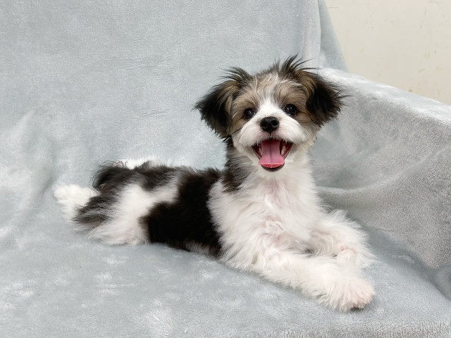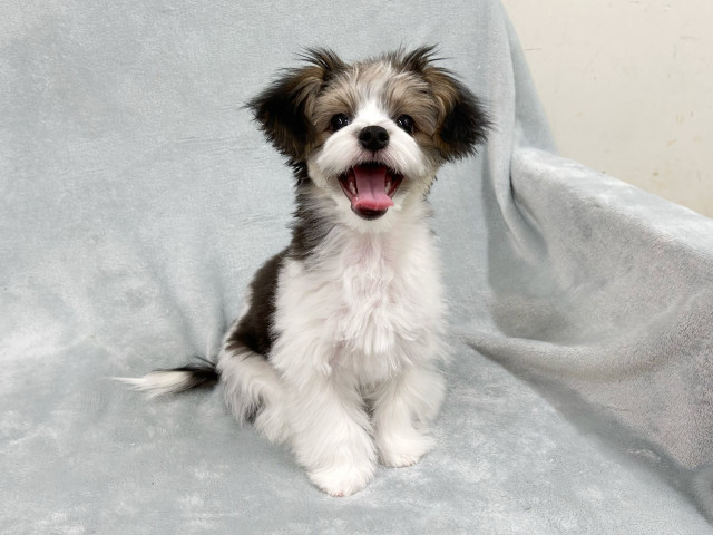 | コメント | 当店初!?マルチーズ×パピヨンの男の子のご紹介です♪ 3/10現在体重:2.3kg 父親体重:マルチーズ 2.8kg母親体重:パピヨン 2kgパピヨン柄とマルチーズの短いマズルを受け継いだいいとこどりのパピマル君♡抱っこが大好きで、お膝の上でずっといい子にしてくれます(*'ω'*)パピヨンもマルチーズもシングルコートで比較的抜け毛が少ない犬種なので、”わんちゃんを飼いたいけど抜け毛が心配…”という方にもおすすめのミックス犬です☆かといっても少しずつ毛は抜けるので、トリミングとブラッシングは必須!子犬の頃からスキンシップもかねて優しくブラッシングしてあげてくだいね♪マルプーはその愛らしい見た目と抜け毛の少なさ、性格の明るさでミックス犬の中でも特に人気のわんちゃんです(*'ω'*)初めてわんちゃんをお迎えする方にもぴったりの飼育用品のスターターセットもございます☆飼い方について不安なことなど気になることはなんでもお尋ねくださいね!ご来店お待ちしております♪※生体費用のほか、ワクチン接種代を1回あたり税込み8800円、マイクロチップ代5500円を頂戴しております。※血統書が別途必要なお客様には税込み5500円を頂戴しております。※当店では生命保証代は無料でついております。※上記以外の費用はかかりません。 |