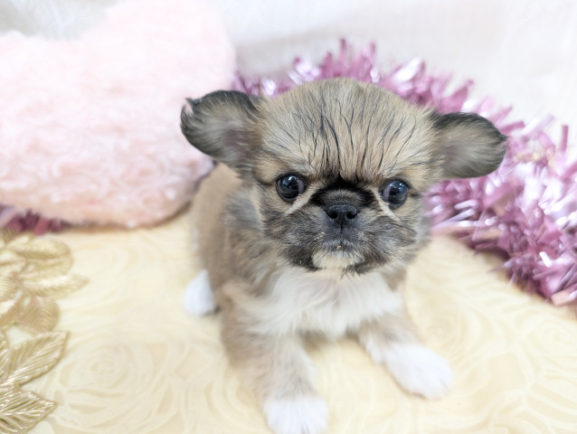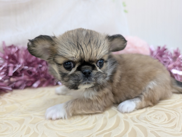 | コメント | ペキニーズ×チワワのハーフちゃん♡鼻ペチャでめちゃくちゃ可愛いです♪ぷひぷひ言いながらおいしいものを探しています! 体重:0.8㎏(2/2時点) |