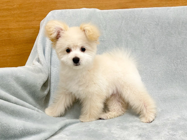 | コメント | 白クマさんのようなポメラニアン×トイプードルの男の子のご紹介です♪2/3現在体重:1.4kg☆遺伝子検査済み父親体重:3.5kg母親体重:2.7kgもこもこふわふわ、まるで白クマのようなポメプー君♡すごく明るい性格で、すぐにお店に慣れてくれ笑顔を振りまいております(*'ω'*)ポメラニアンもトイプードルも、すごく甘えん坊でアクティブな犬種!いつでもどこでも一緒にお出かけしたいという飼い主さんにはぴったりの元気いっぱいのMIX犬です♪もふもふのヘアは、月に一回のトリミングで飼い主様の好みのスタイルにしてあげてくださいね☆お問い合わせお待ちしております♪※生体費用のほか、ワクチン接種代を1回あたり税込み8800円、マイクロチップ代5500円を頂戴しております。※血統書が別途必要なお客様には税込み5500円を頂戴しております。※当店では生命保証代は無料でついております。※上記以外の費用はかかりません。 |
