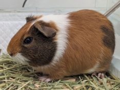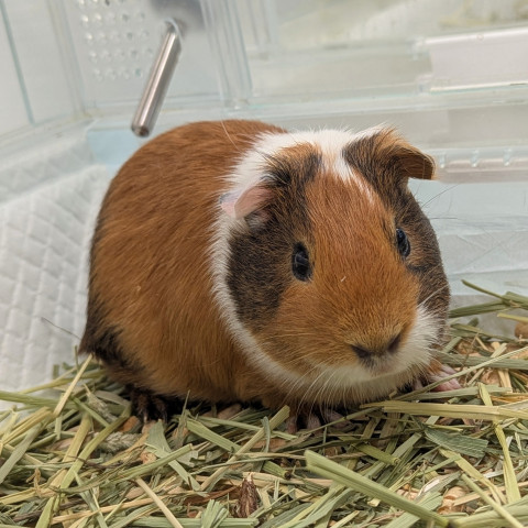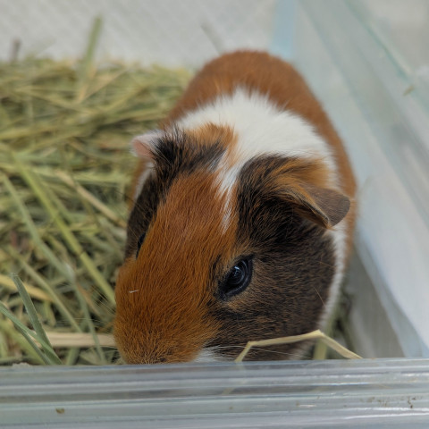 | コメント | 三毛猫カラーがとてもかわいい短毛のモルモットです。臆病でまだ恐怖心がある印象ですが、お顔の周りは触らせてくれます。 |