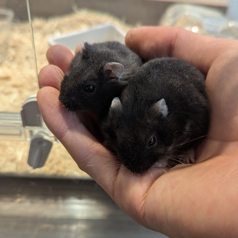 | コメント | 背中側が黒く、お腹が白い体毛がかわいい小型ハムスターです!とても人懐っこく、写真のように手に乗ってくれます |