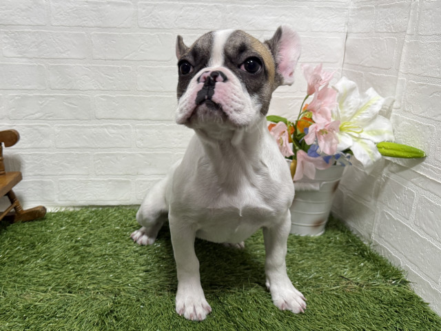 コメント お父さん:8kg お母さん:9kg  出生地:兵庫県明石市お顔の模様が左右対称の美形フレンチちゃんです( *´艸`)体格もいい体格です!   ※生体代金と別途ワンニャンクラブ代金(税込)55,000円をいただきます。 (2回目以降の混合ワクチン・狂犬病ワクチン接種済みの場合は別途料金を頂戴いたします。詳しくはお問い合わせください。)