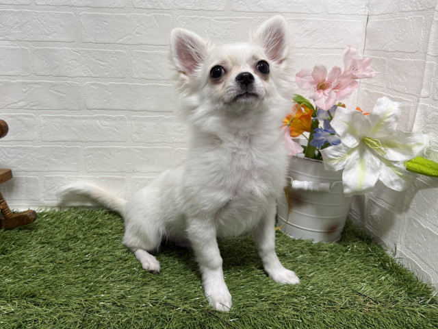コメント お父さん:3kg お母さん:2.3kg  出生地:大阪府大阪市 足長スリムなチワワくん(*'ω'*)色も可愛く顔は男前です(*´ω`)   ※生体代金と別途ワンニャンクラブ代金(税込)55,000円をいただきます。 (2回目以降の混合ワクチン・狂犬病ワクチン接種済みの場合は別途料金を頂戴いたします。詳しくはお問い合わせください。)