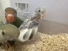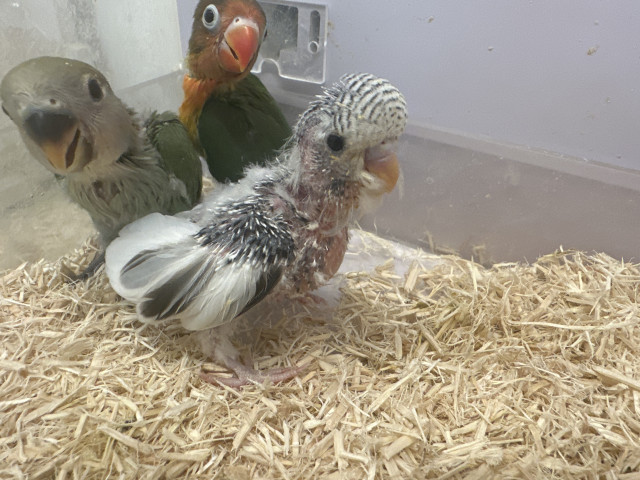 コメント 2026年2月生まれの子です。珍しいジャンボセキセイの雛です。ちょっとおハゲが目立ちますがまた生え揃います。3月12日(木)から販売開始予定ですが、延期・中止になる場合がございます。