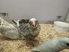| コメント | 2026年2月生まれの子です。白に上品なパイド模様が綺麗な雛です。食いしん坊。 |