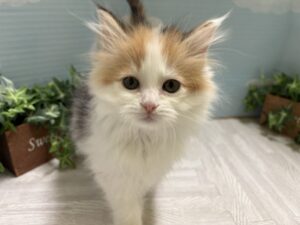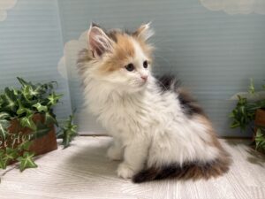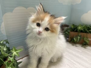 コメント 当店 初登場! サイベリアンのとってもかわいいミケ柄女の子登場です‼お父さん:クリームタビー&ホワイト 7㎏ お母さん:トーティッシュシュル&ホワイト 5㎏