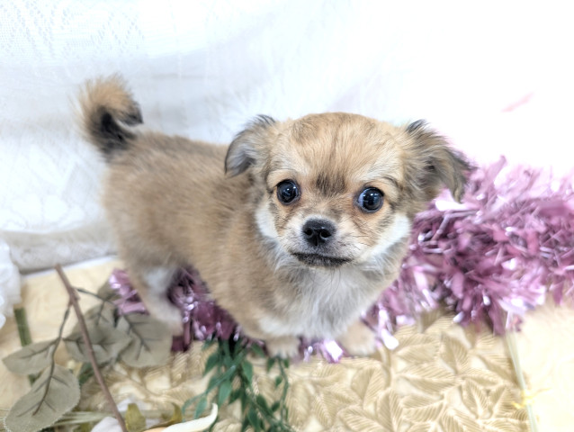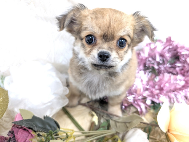 | コメント | 好奇心旺盛で遊ぶのが大好きなチワワくん♡くりくりのおめめとへちょっとした耳が可愛らしいです☆ 体重:1.1㎏(3/30時点) |