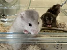 | コメント | 2026年3月チェコから輸入。長毛の大型ハムスターの女の子たちです。メガネをかけたような模様があり人気の品種です。白い子は多分コンタクト。 |
