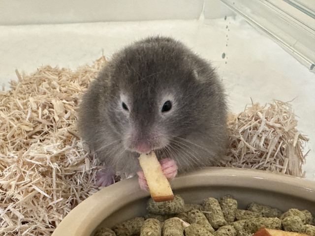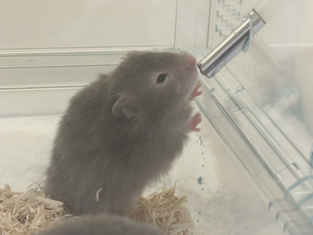 | コメント | 2026年3月チェコから輸入。長毛の大型ハムスターの女の子たちです。メガネをかけたような模様があり人気の品種です。白い子は多分コンタクト。 |