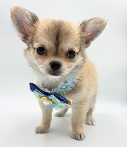 コメント とっても綺麗なフォーンカラーのチワワくん♪整ったお顔でけだるげな感じがたまらない…!マイペースだけど人が大好きでしっぽをフリフリしてくれます♡