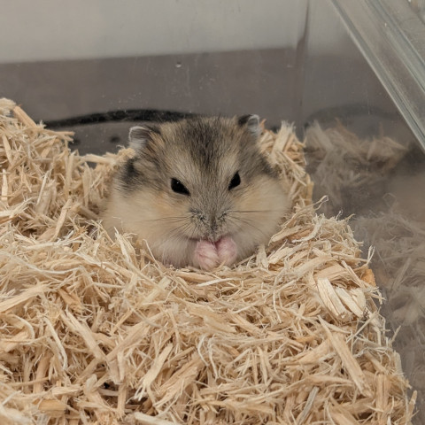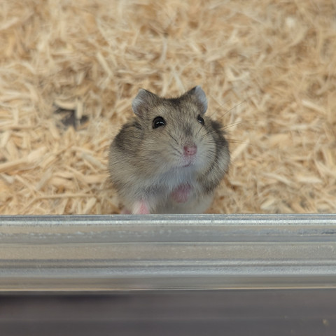 コメント グレーの体色の背中に黒いラインが入るのが特徴のジャンガリアンハムスターです!小型でなつきやすいです。