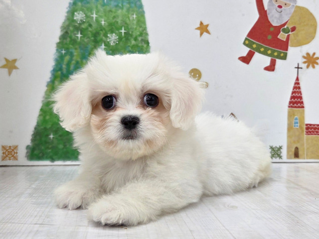 | コメント | お父さん:ペキニーズ お母さん:ビション・フリーゼ まんまるおめめの女の子(●´ω`●) 首をかしげてお話を聞いたり短い前脚で上手におもちゃを押さえて遊ぶ好奇心旺盛さんです☆彡 |